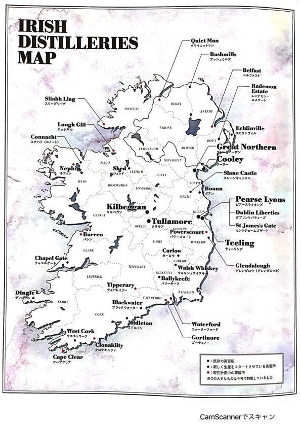 アイリッシュ復興の立役者・クーリー蒸溜所ができた頃のアイルランドの蒸溜所マップ↓