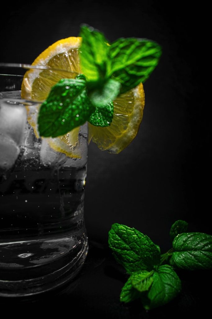 白い石壁にたらしたミントティー
